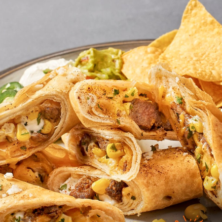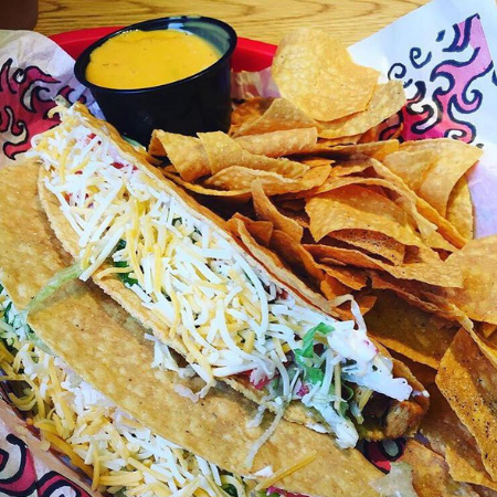 Chicken Tinga has a new name and the same bold taste you love! shredded chicken, sauteed onions, spicy chipotle sauce, served in a warm flour tortilla with shredded lettuce, fresh pico de Gallo, jalapenos, sour cream, queso fresco and chopped cilantro. Served with a side of tortilla chips and salsa.