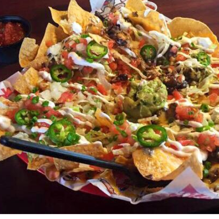 Cilantro lime rice, refried or black beans, cheese, pico, jalapenos, sour cream, guacamole and tortilla strips. Served in a bowl with choice of toppings and a side of chips.